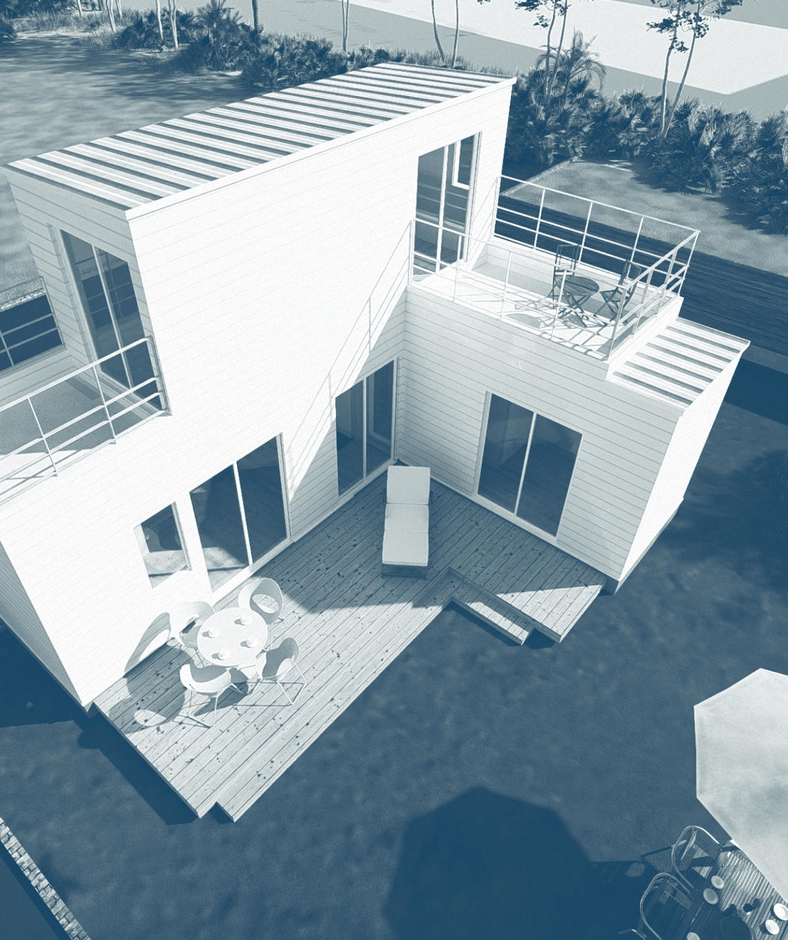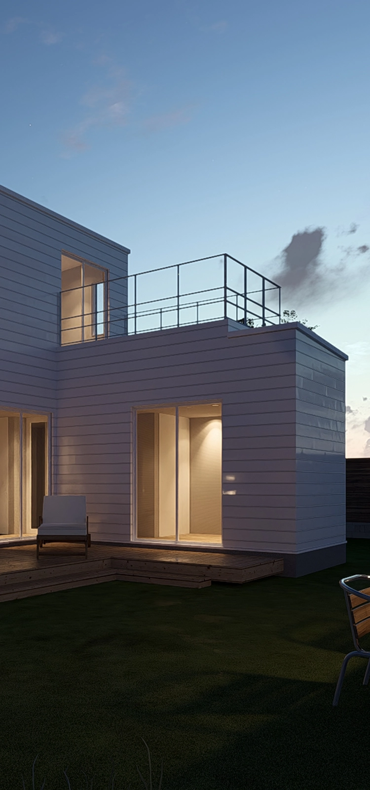 屋根全体に「Roof-1」を標準装備。太陽光を利用しながら、景観と調和する意匠。構造体とエネルギーシステムを一体化したmostの象徴的ディテールです。