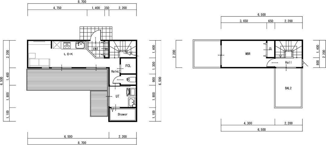 | 外寸 | 幅 4.4m × 長さ 6.5m × 高さ 5.8m(1ユニット) |